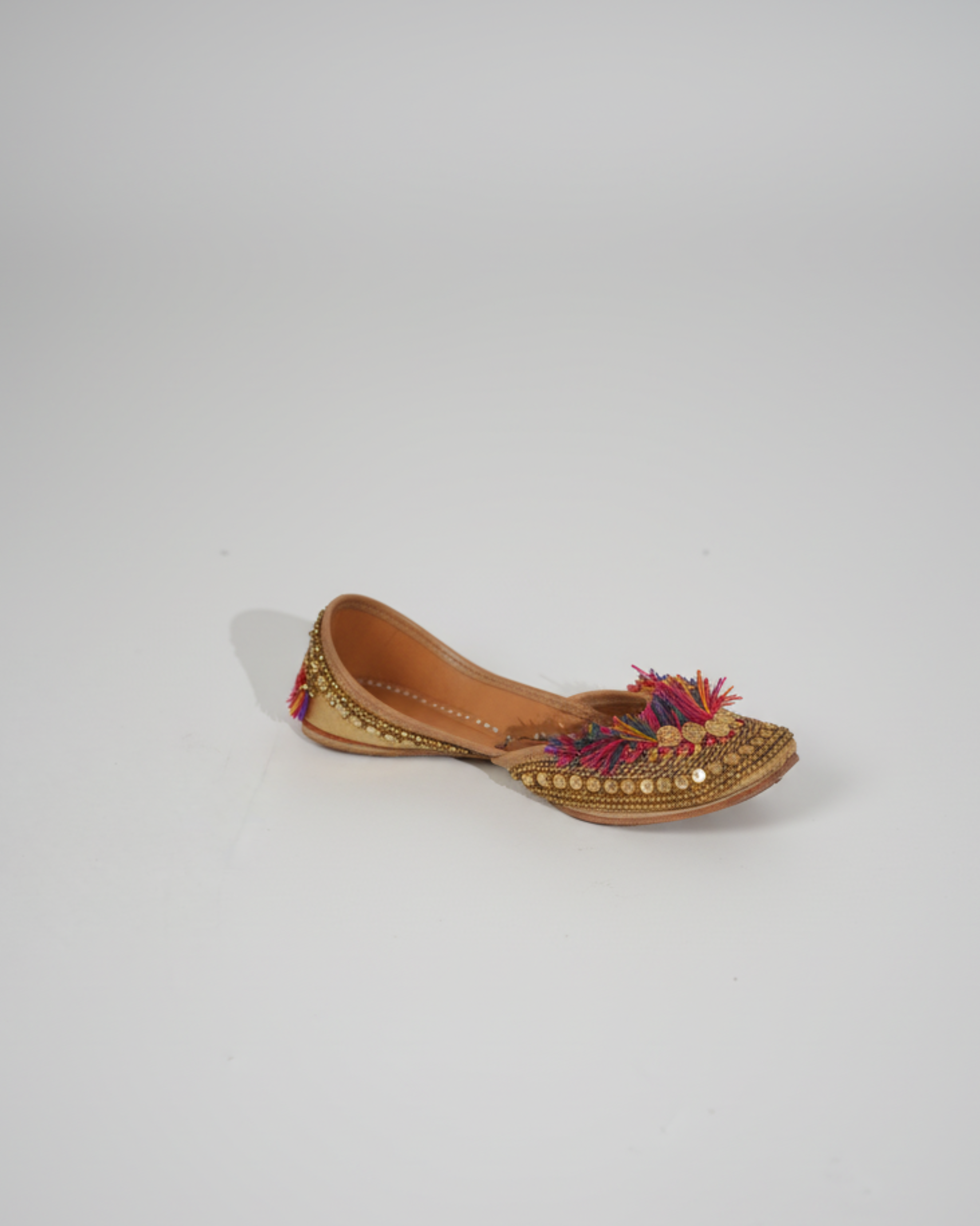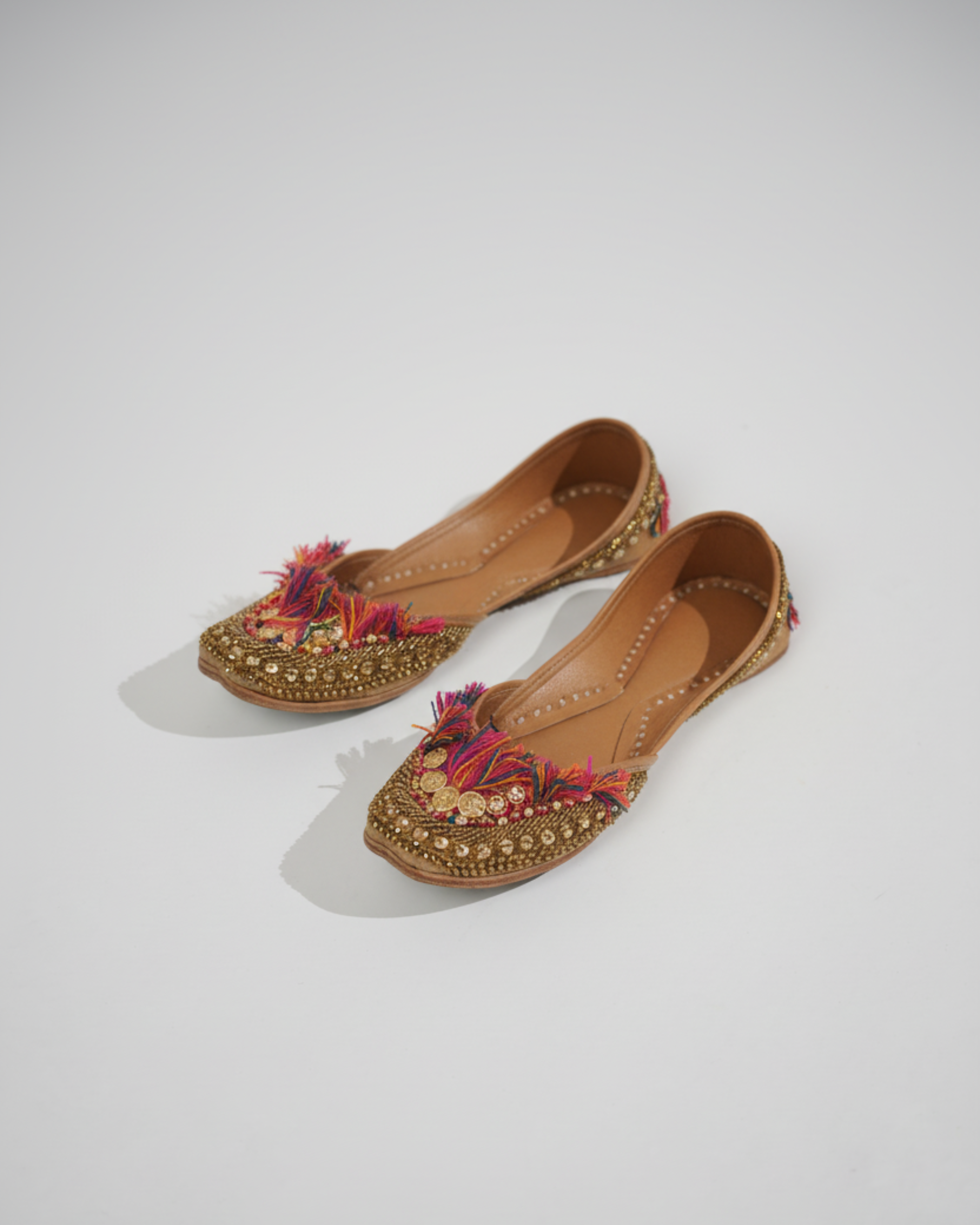 Introducing the Banjara Juttis, a masterpiece of craftsmanship by CHY! Handmade to perfection, these stunning juttis boast intricate embroidery and premium leather soles, evoking the free-spirited essence of the Banjara tribe.