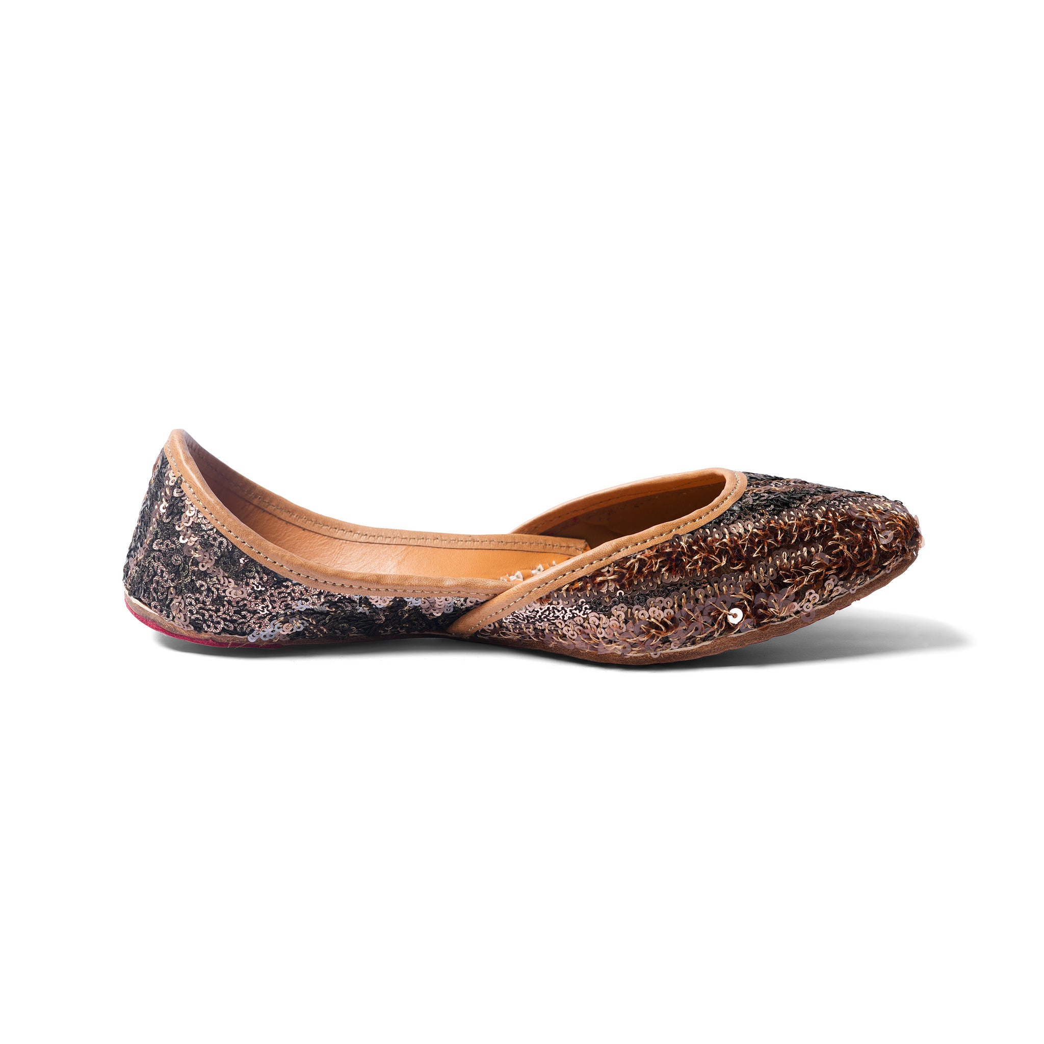 Rangnoor Jutti – Add a touch of festive sparkle to your steps with our Rangnoor Jutti. Designed with rich black and golden sequins, it beautifully blends tradition with modern glamour. The name Rangnoor means “color and light,” reflecting its radiant design and vibrant charm. With a cushioned insole and soft lining, this jutti promises comfort along with elegance — perfect for festive outfits, parties, or weddings where you want to shine effortlessly. ✨