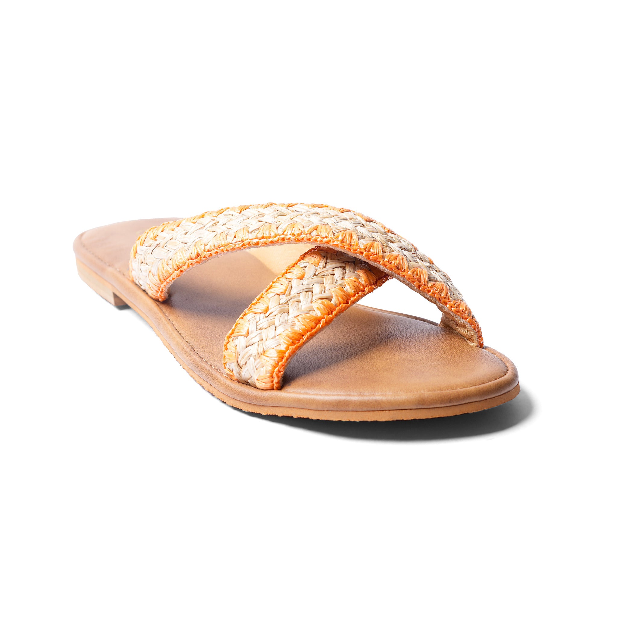Brighten your step with our Tangerine Cross Flats, featuring eye-catching neon orange cross straps that bring a fun, vibrant vibe to your look. The soft cushioned sole keeps your feet comfortable all day, making them perfect for everyday wear, brunch dates, or vacations.